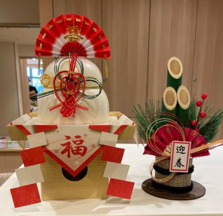 お正月飾りや鏡餅が館内の各箇所に、またご入居のお部屋の玄関には先日手作りしたしめ縄が飾られ、慶びとともに新しい年をお迎えしました。