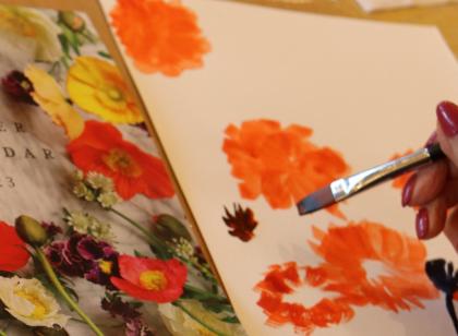 芯の部分を描くのは筆の後ろに絵具を付けて、ポンポンと押すと本物のように描けるそうです。