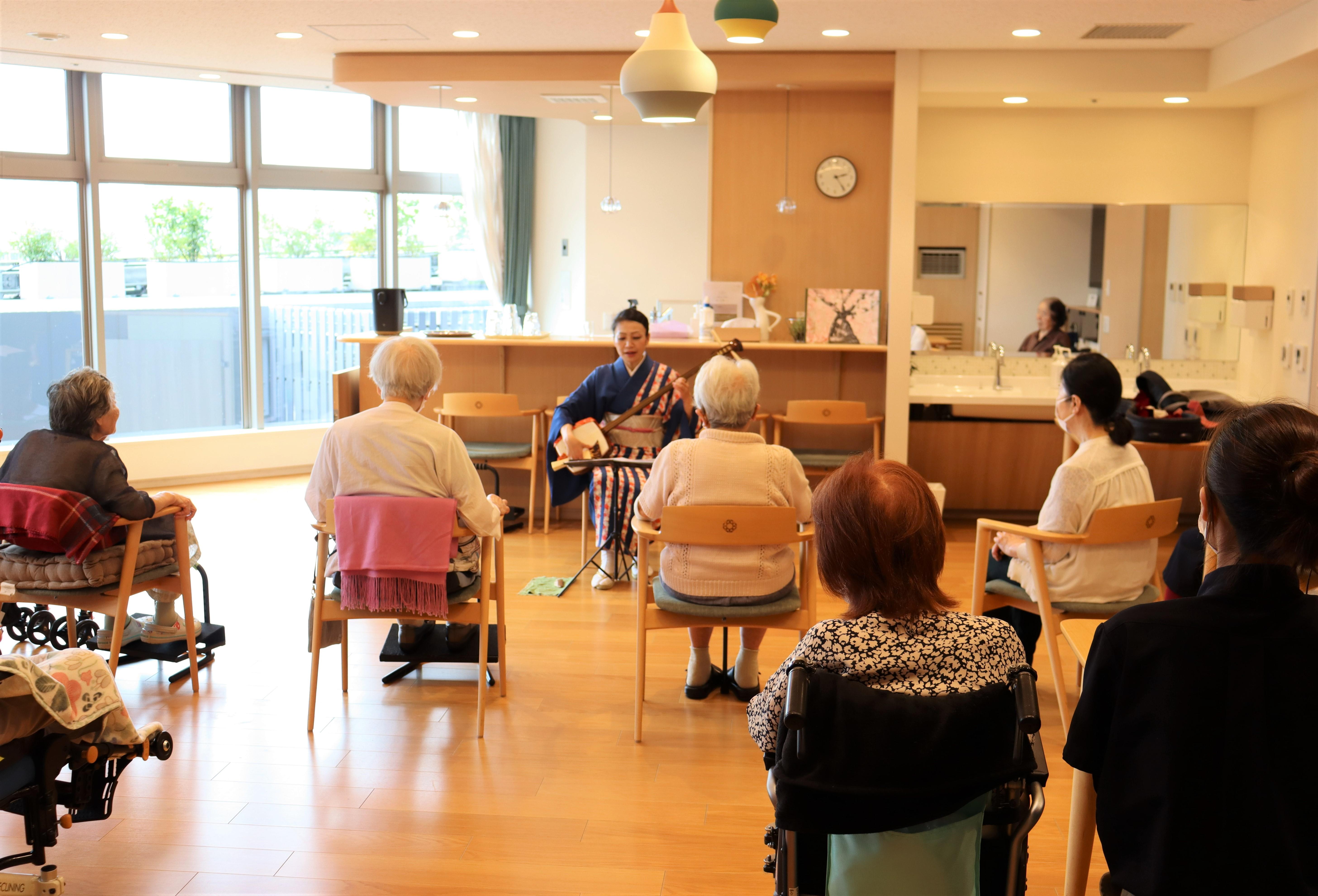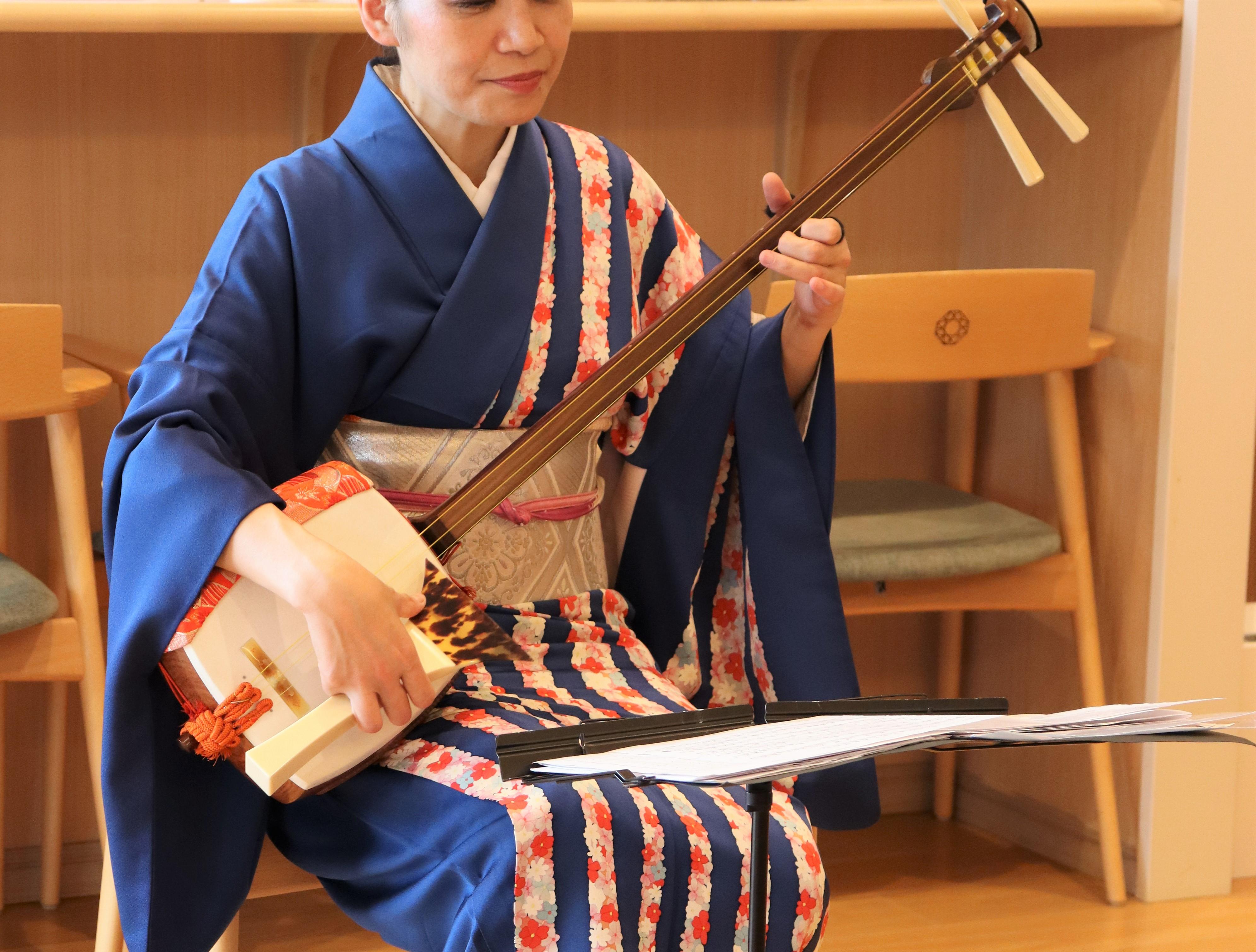 『さくらさくら』や、『ふるさと』など、三味線の演奏に合わせて合唱ができました。