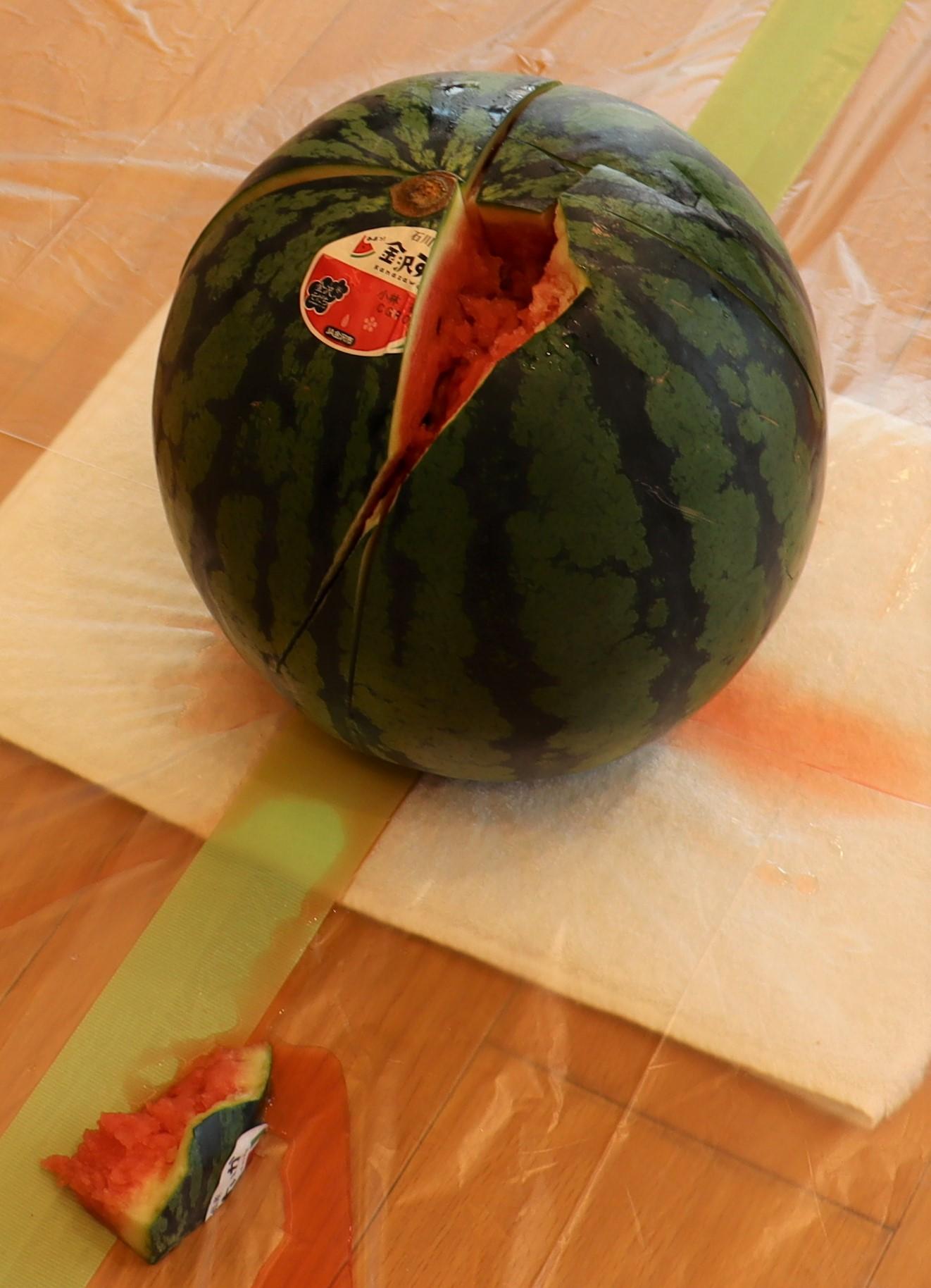 なかなか、スイカはスパッとは割れず・・。