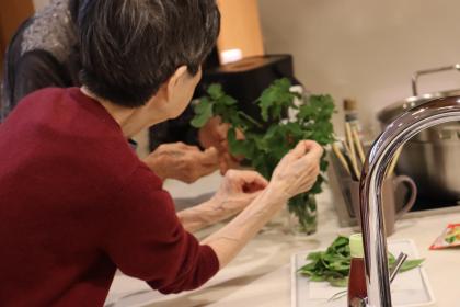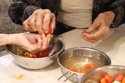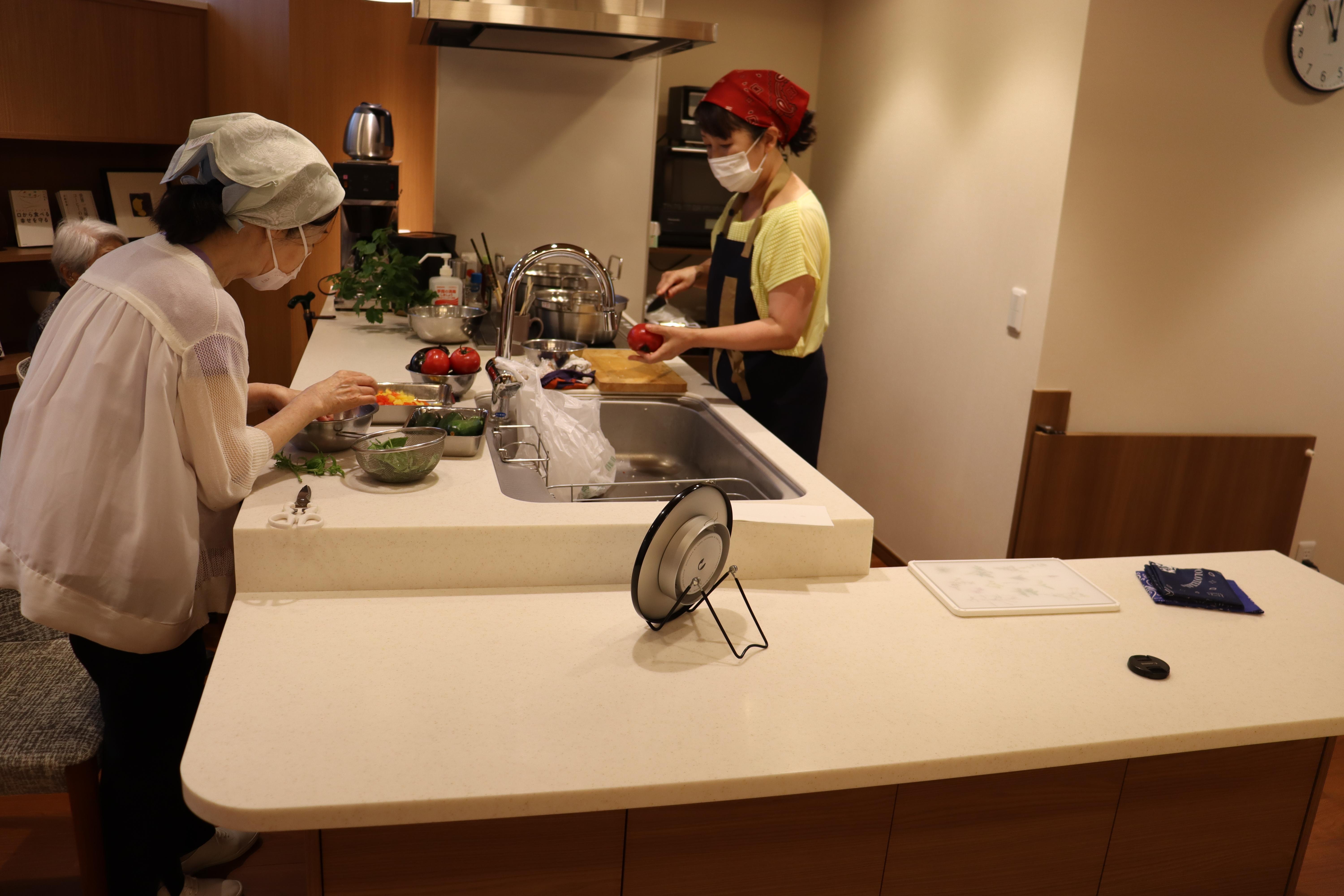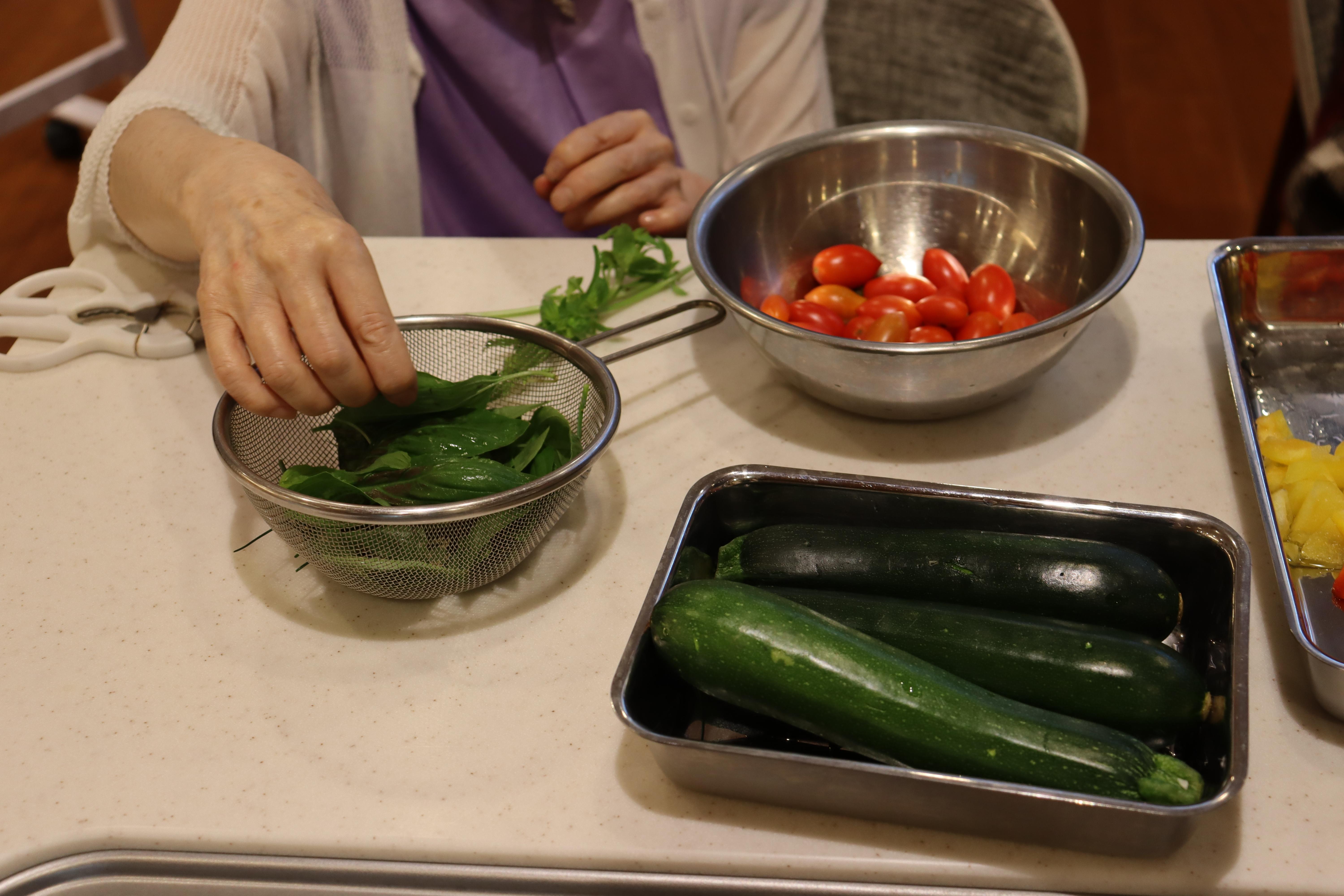 今日はお料理クラブ。お客様とお料理上手なスタッフとで、夏野菜をたっぷり使ったラタトゥーユ作り。