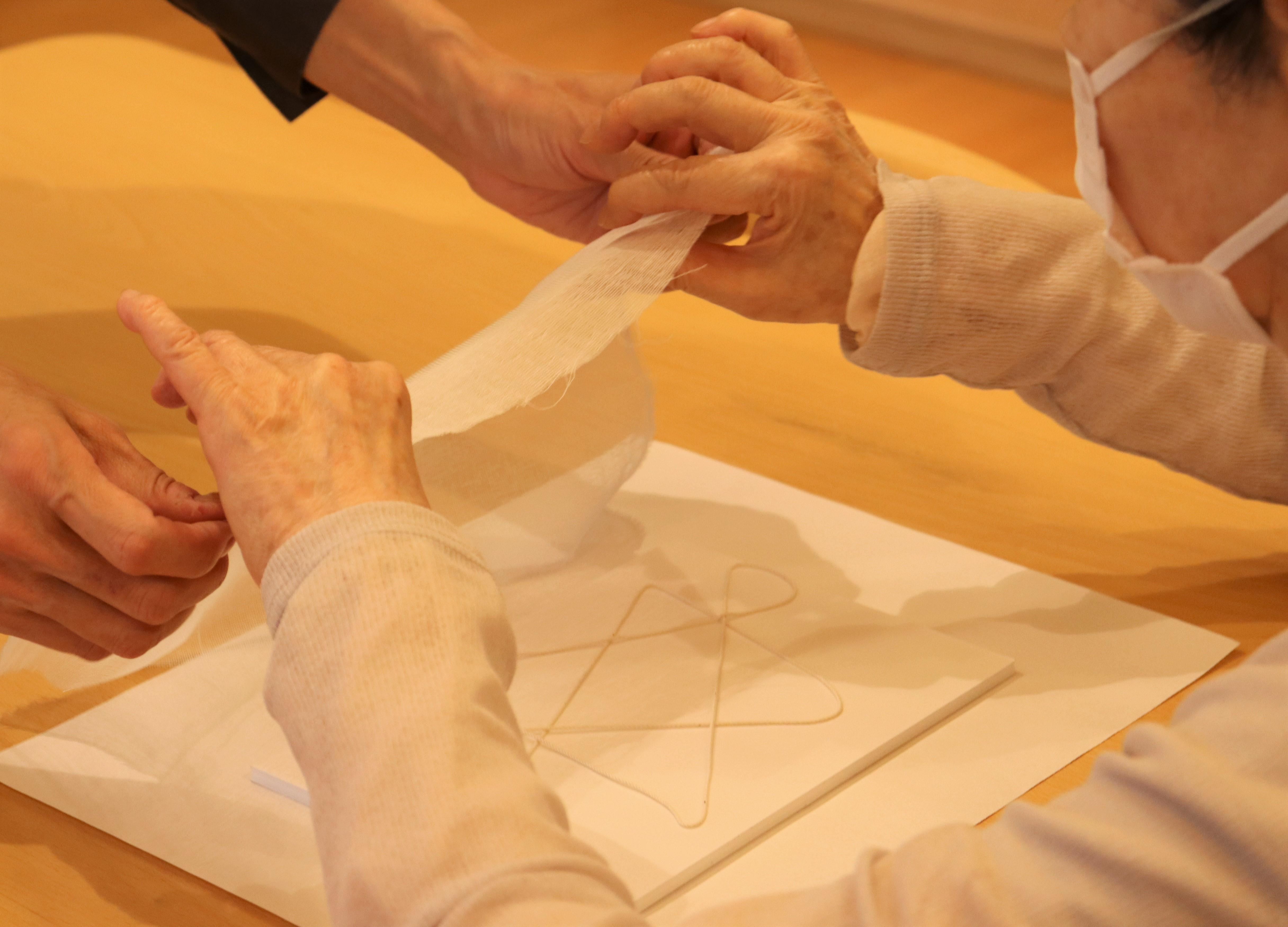 タコ糸やガーゼを使用して、キャンバス作成からスタート!