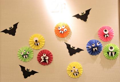 子供達に楽しんでもらえるように、ポップな飾りを作りました。