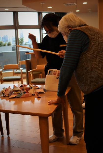 竿から垂れる毛糸がゆらゆらして、なかなか狙ったチョコを釣るのは大変!