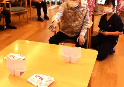 たくさん獲得した駄菓子を、その場ですべて完食する方。