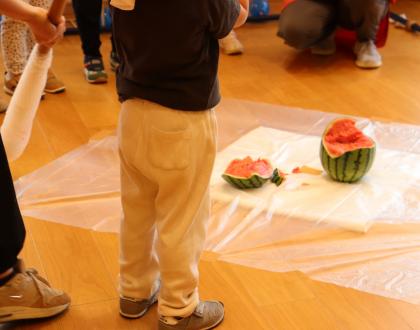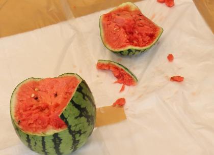西瓜が真二つに割れて、一同拍手喝采です!!
