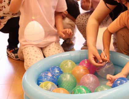 保育園児のヨーヨー釣りには、皆様、一喜一憂。