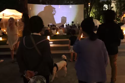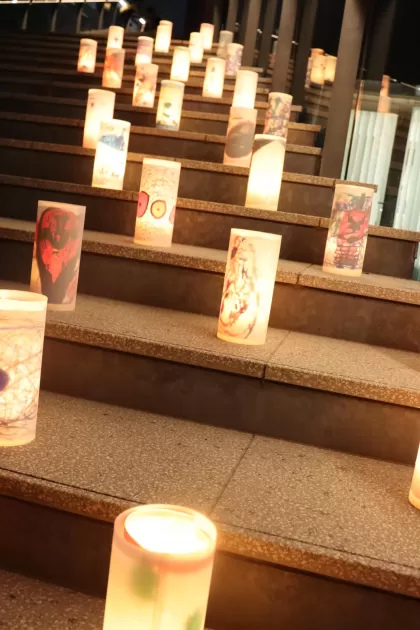 ののもりの至る所に、願い事や好きな絵が描かれた灯篭が優しい光を燈します。