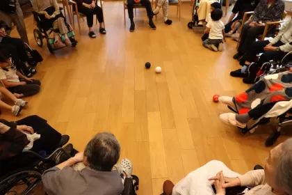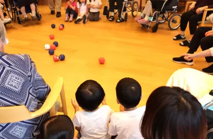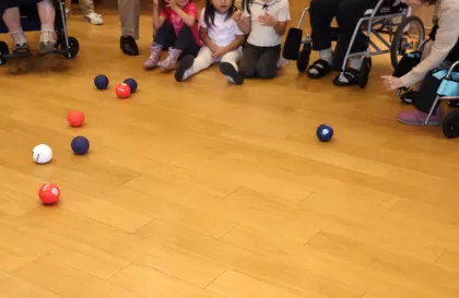 お隣の『おはよう保育園』の園児を招待して、チーム戦。