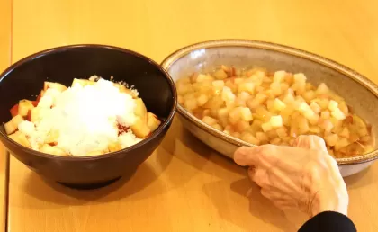 リンゴのコンポートを作って、蒸しケーキを作りました。