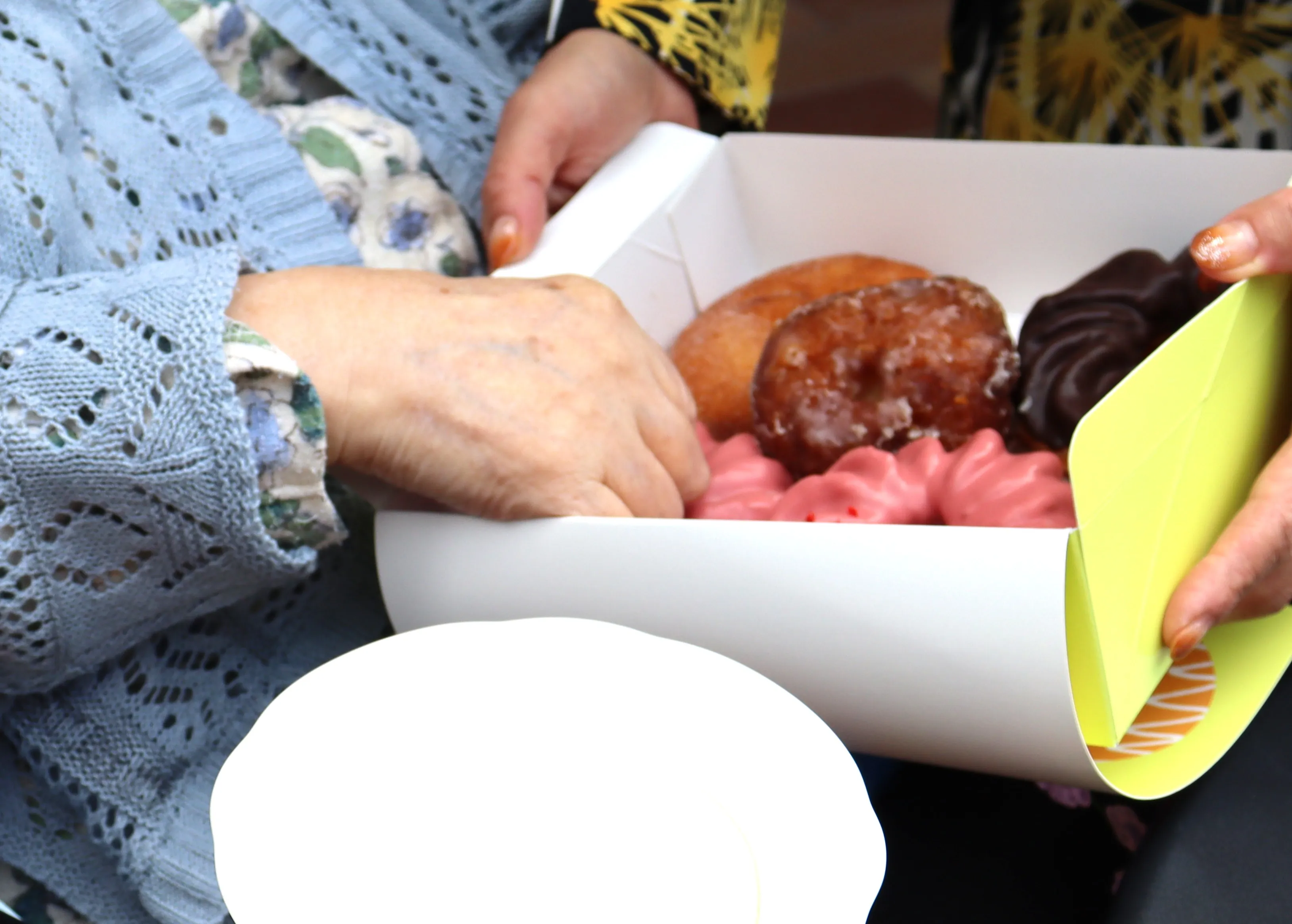 購入したドーナツを、取り皿へ。