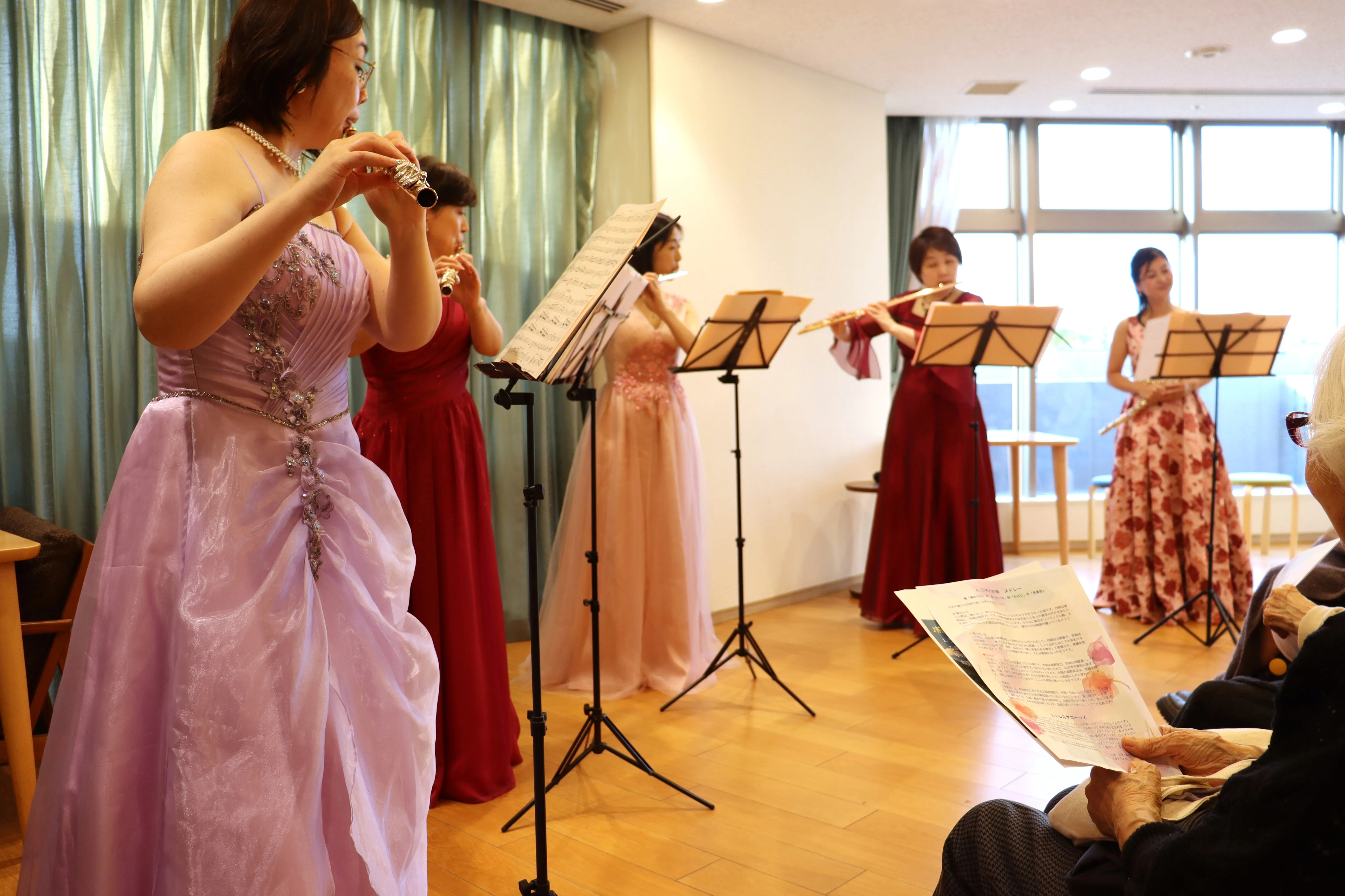 コンサートのアンコールは、『ふるさと』をフルートの調べに合わせて皆様と大合唱!