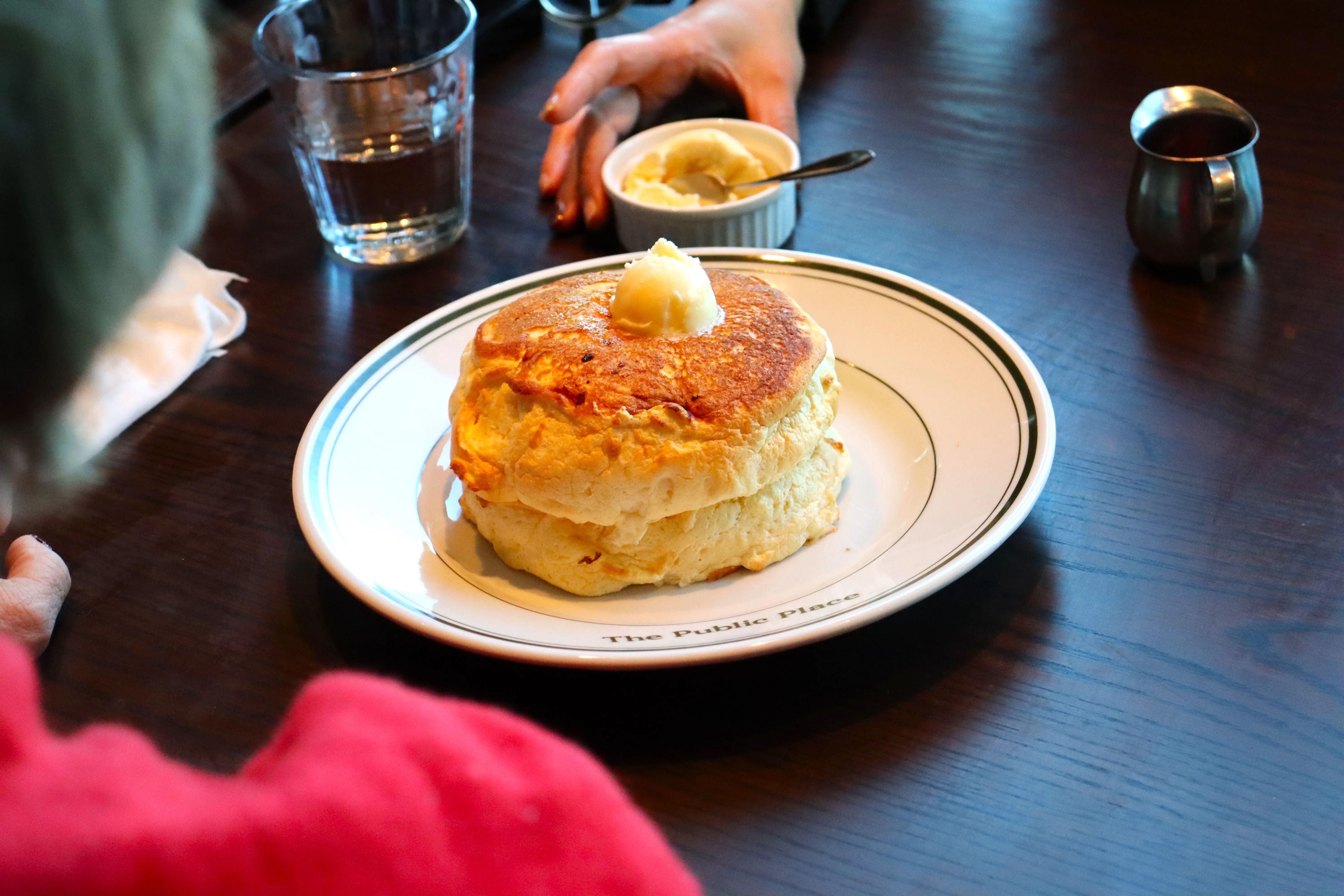 「ふわふわのパンケーキなので、意外と食べられますよ」とスタッフ。