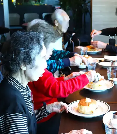 いよいよ、焼き上がったパンケーキが運ばれてくると、その大きさに皆様びっくり!