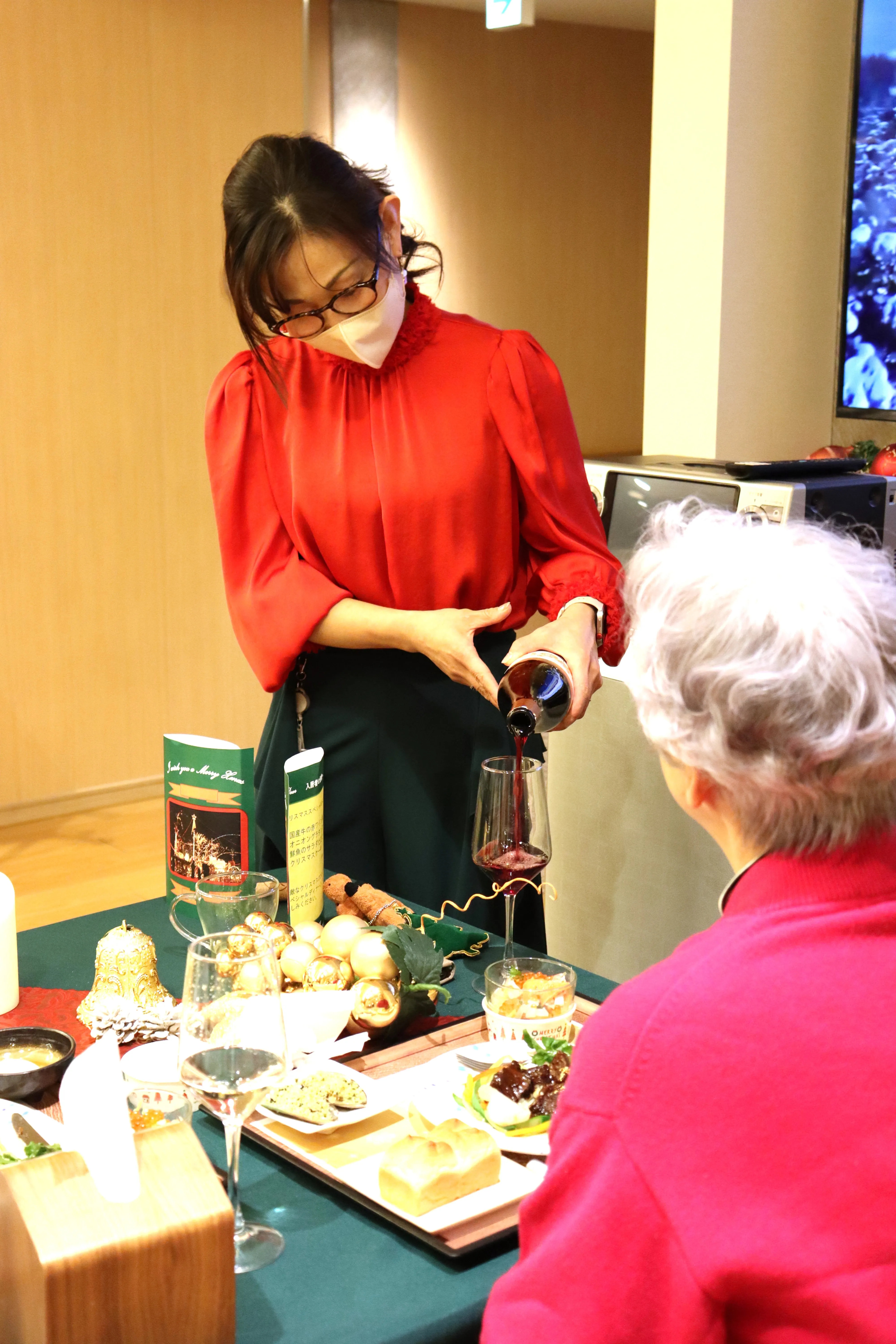 グラスを片手に乾杯したり、いつもとは違うディナーをお楽しみいただきました。