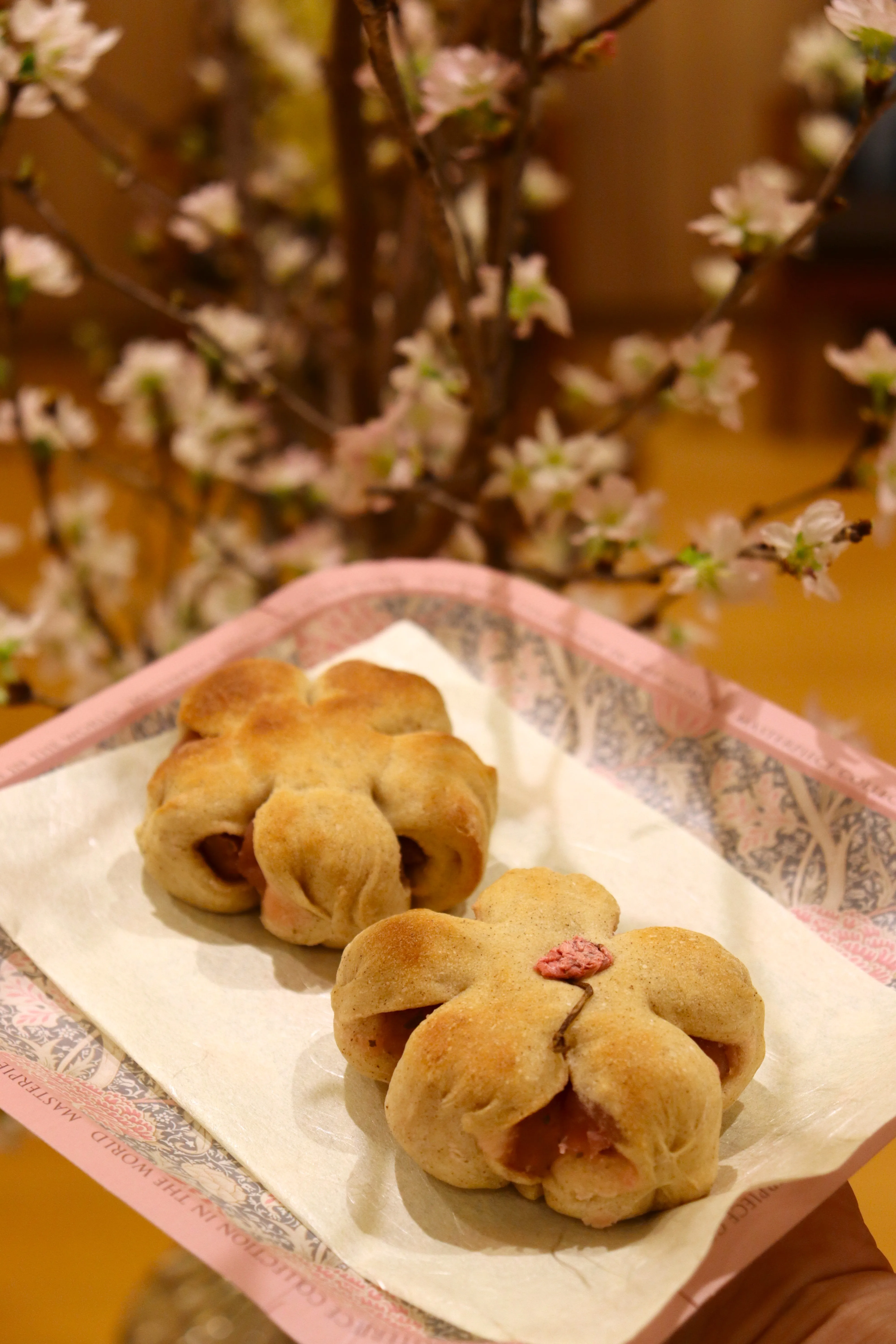 パン中央に桜の塩漬けをトッピングして、成形完了です。