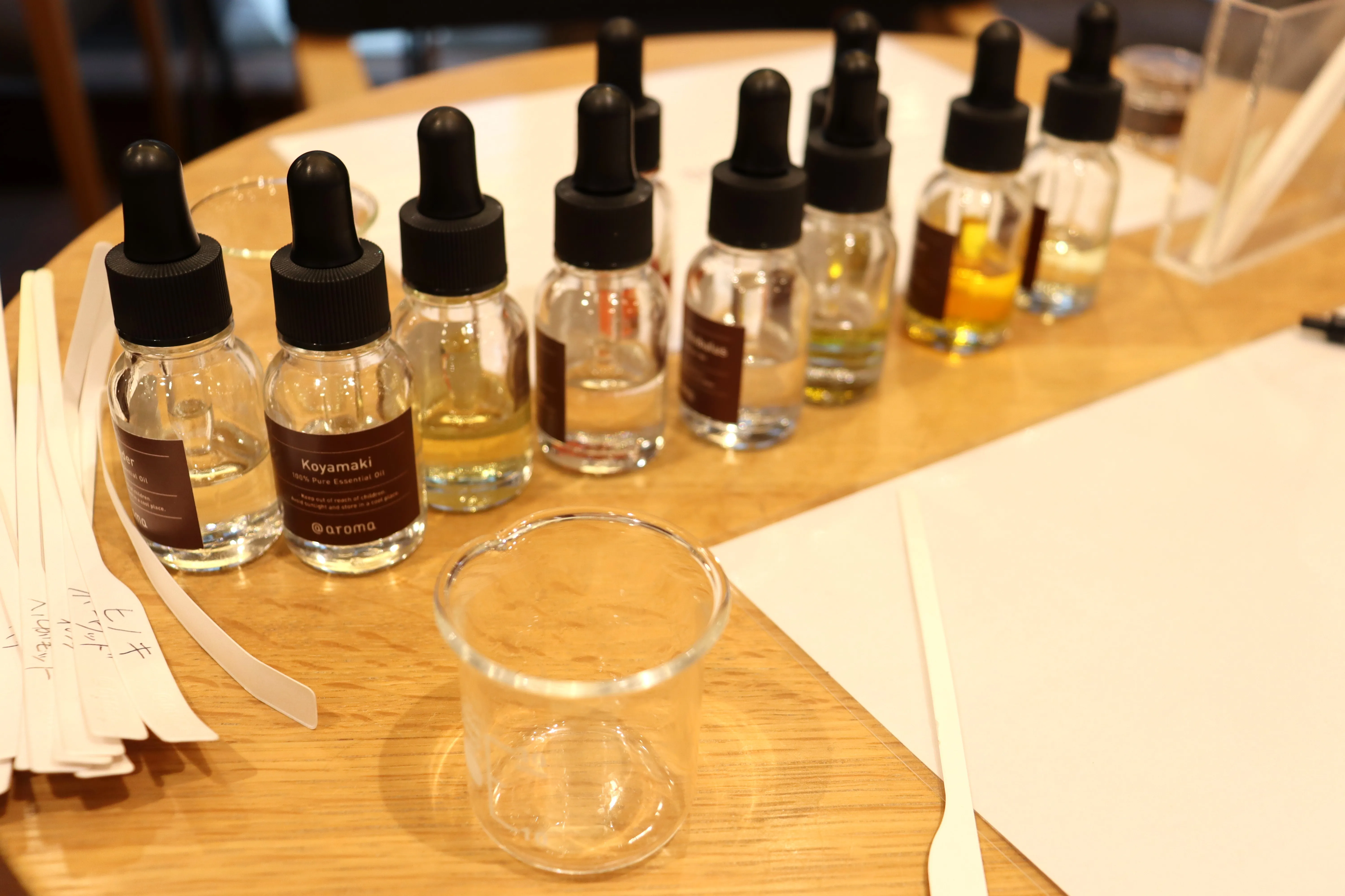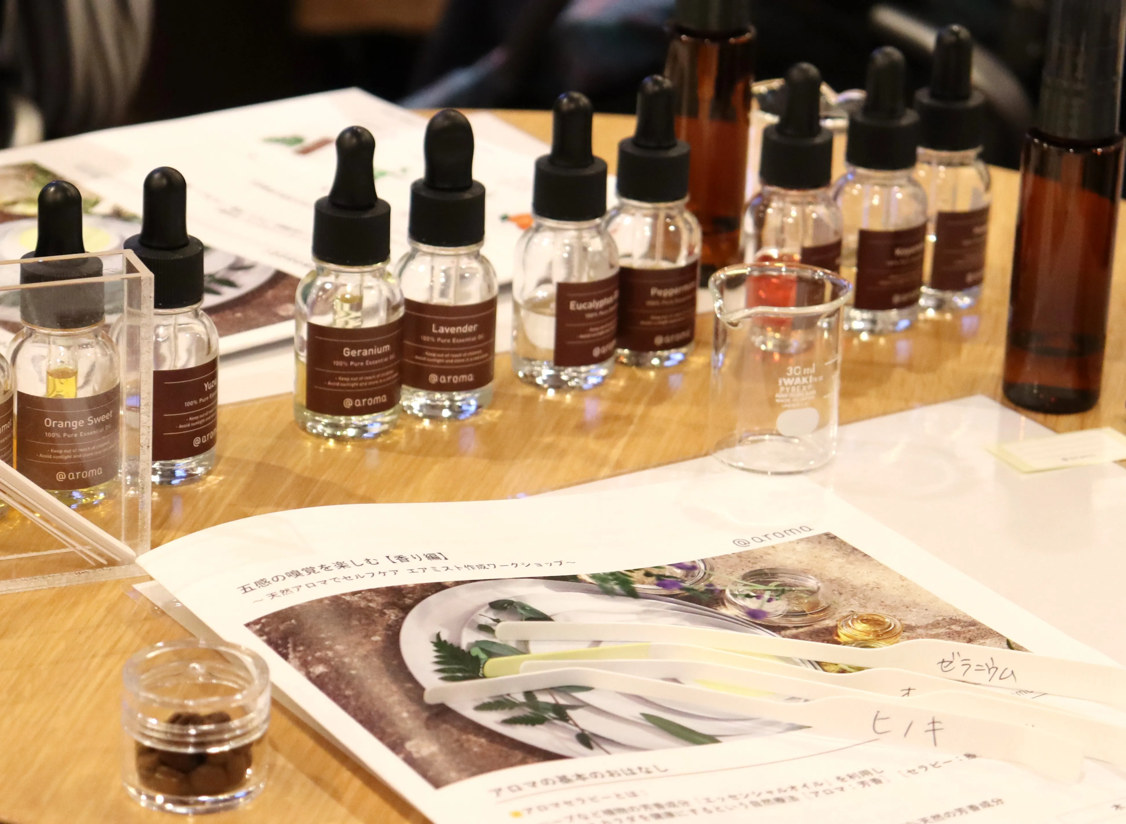 「もう少し、さわやかな香りに!」とリクエストすると、@aromaのスタッフが調整してくれます。「そうそう!これでいいわ!」