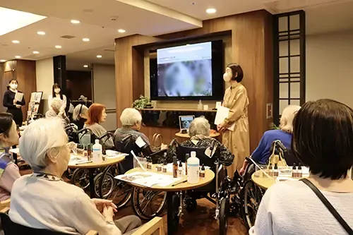 ツクイ・ののあおやまの香り演出をお願いしている@aromaのスタッフをお招きして、先日アロマミスト制作会を開催しました。