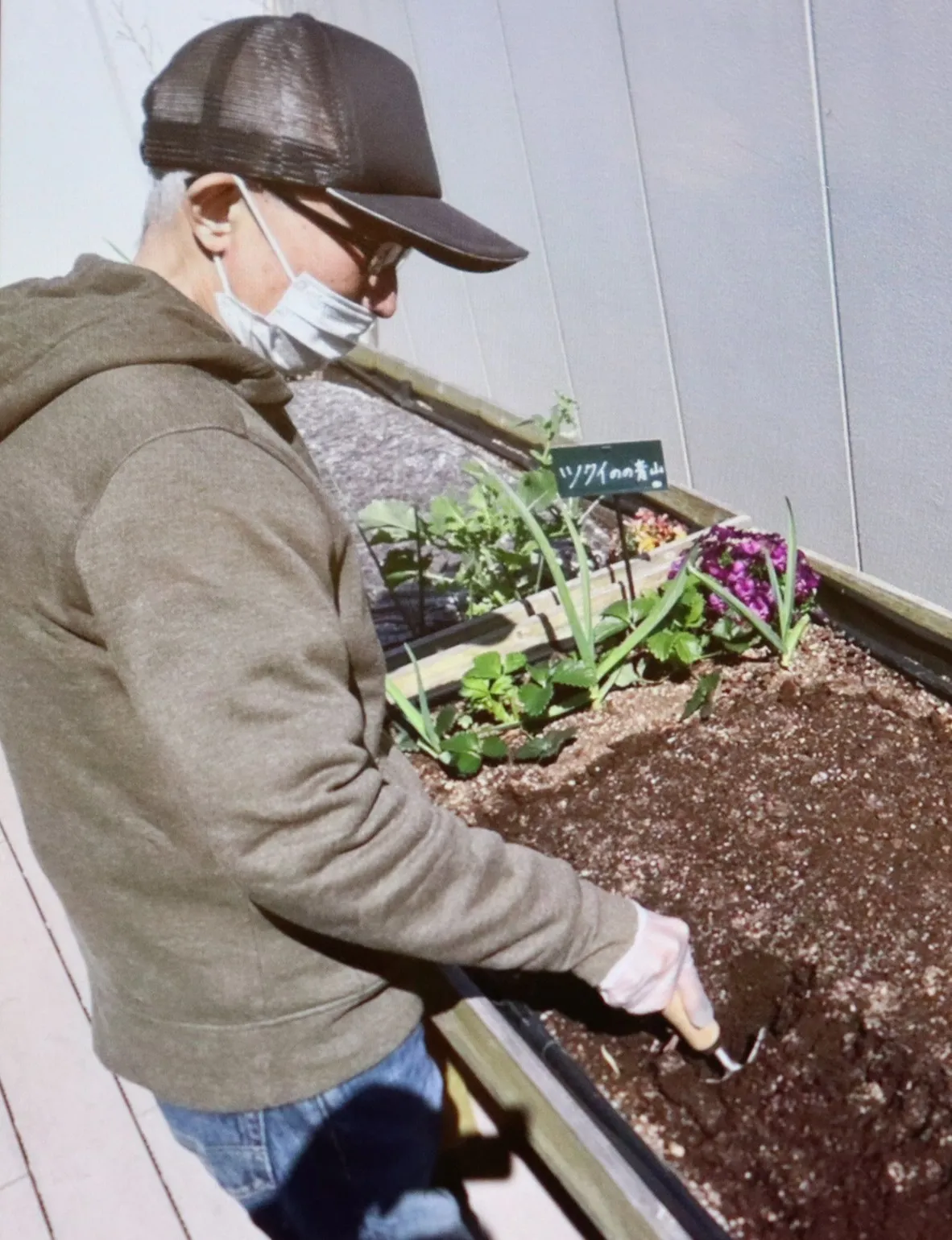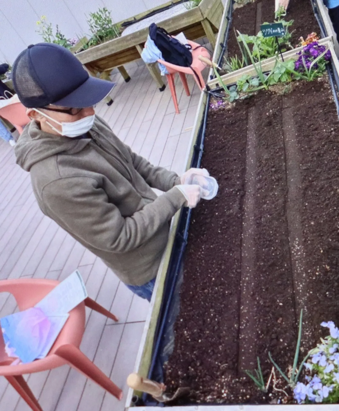 お客様が、スタッフと一緒に屋上菜園のお手伝いをされました。
