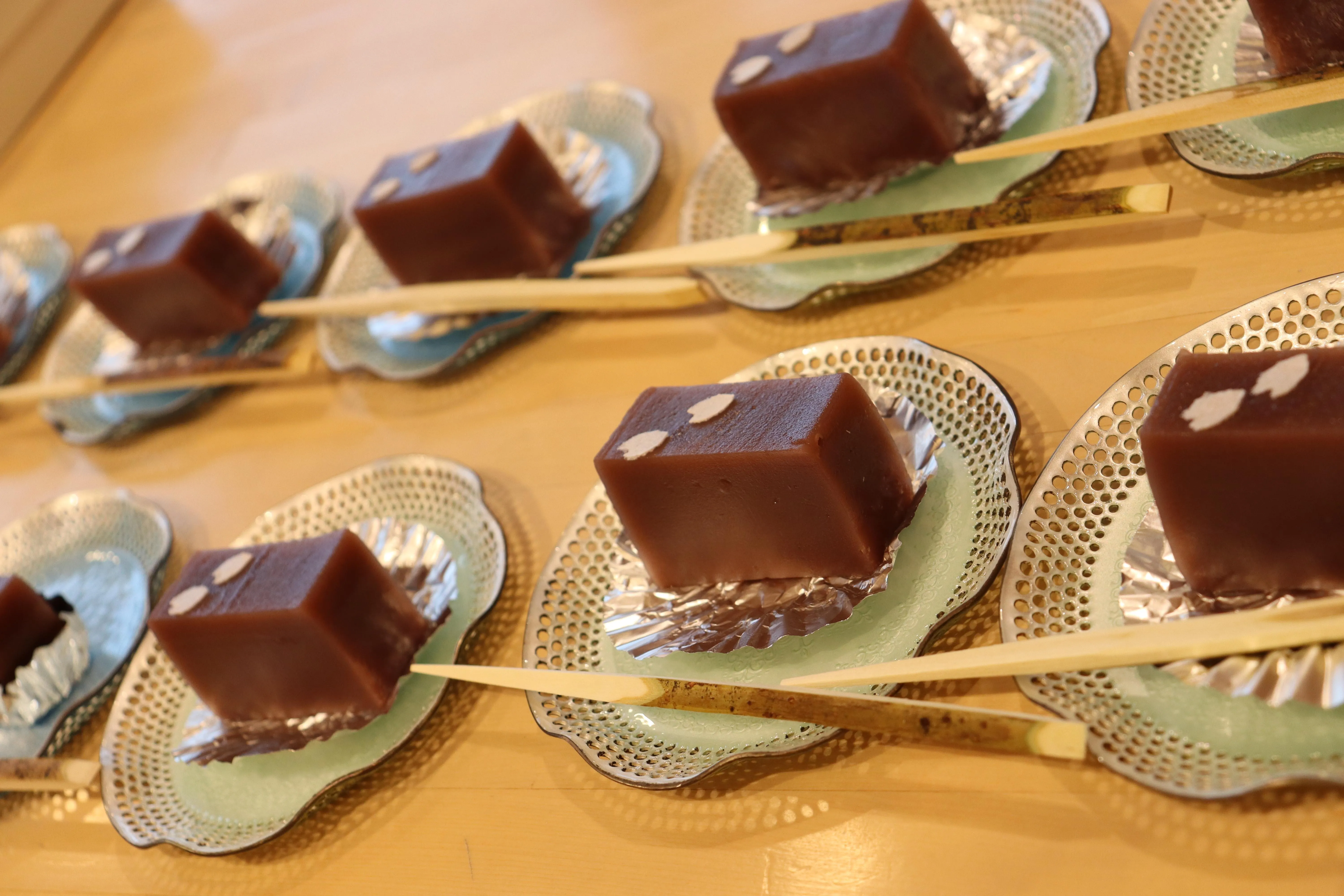 講師お手製の蒸し羊羹は、甘さ控えめで美味。