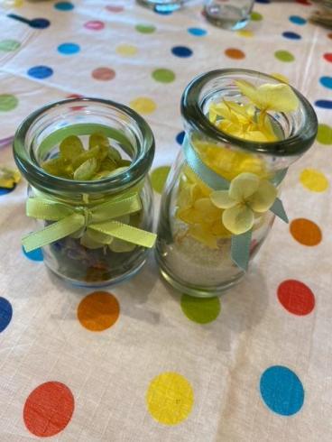 今回は、6月の季節のお花「紫陽花」とアロマオイル(精油)を使い、お部屋に飾れるポプリづくりを楽しみました。