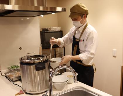 出来立てをお召し上がりいただけるよう、オープンキッチンで調理しました。