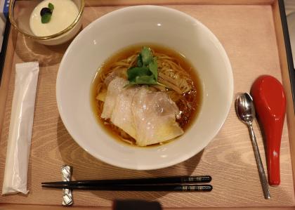 茹でた麺にスープを注ぐと、辺りはたちまち、食欲をそそる鶏の出汁が効いたスープのいい香りに包まれました。