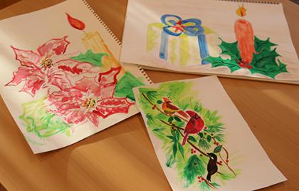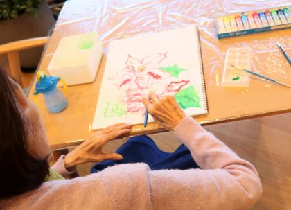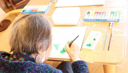 色合いに悩みながらも、大きな画用紙いっぱいに描く方。