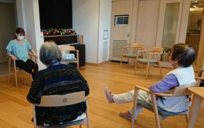 先生の掛け声に合わせて太腿の筋肉を動かすと、ポカポカしてきました。