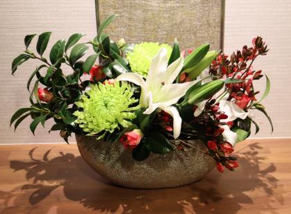 各フロアには、煌びやかなクリスマスのデコレーションのほか、所々にある生花が目を楽しませてくれます。