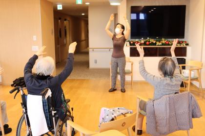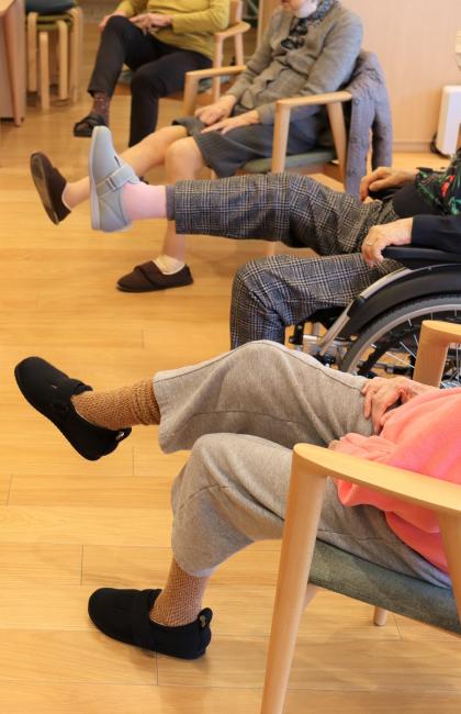 「ふくらはぎは第二の心臓と呼ばれています。たくさん動かして!」との先生の声に、皆様の引き上げたつま先の位置が、一層上がります。