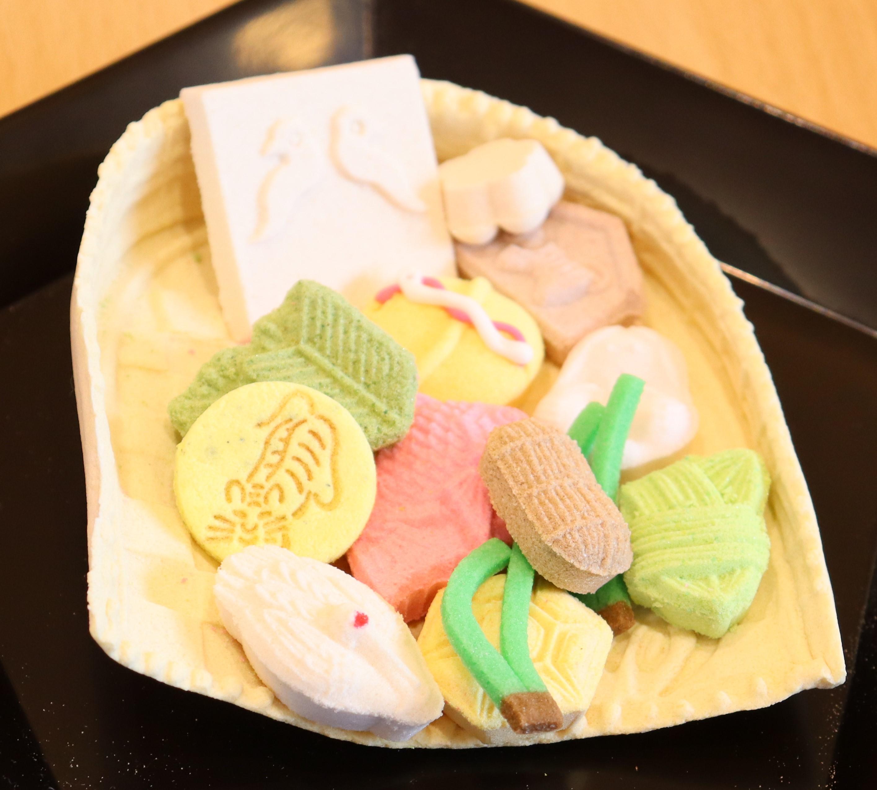 お茶菓子は、可愛らしい鯛を模したお菓子です。