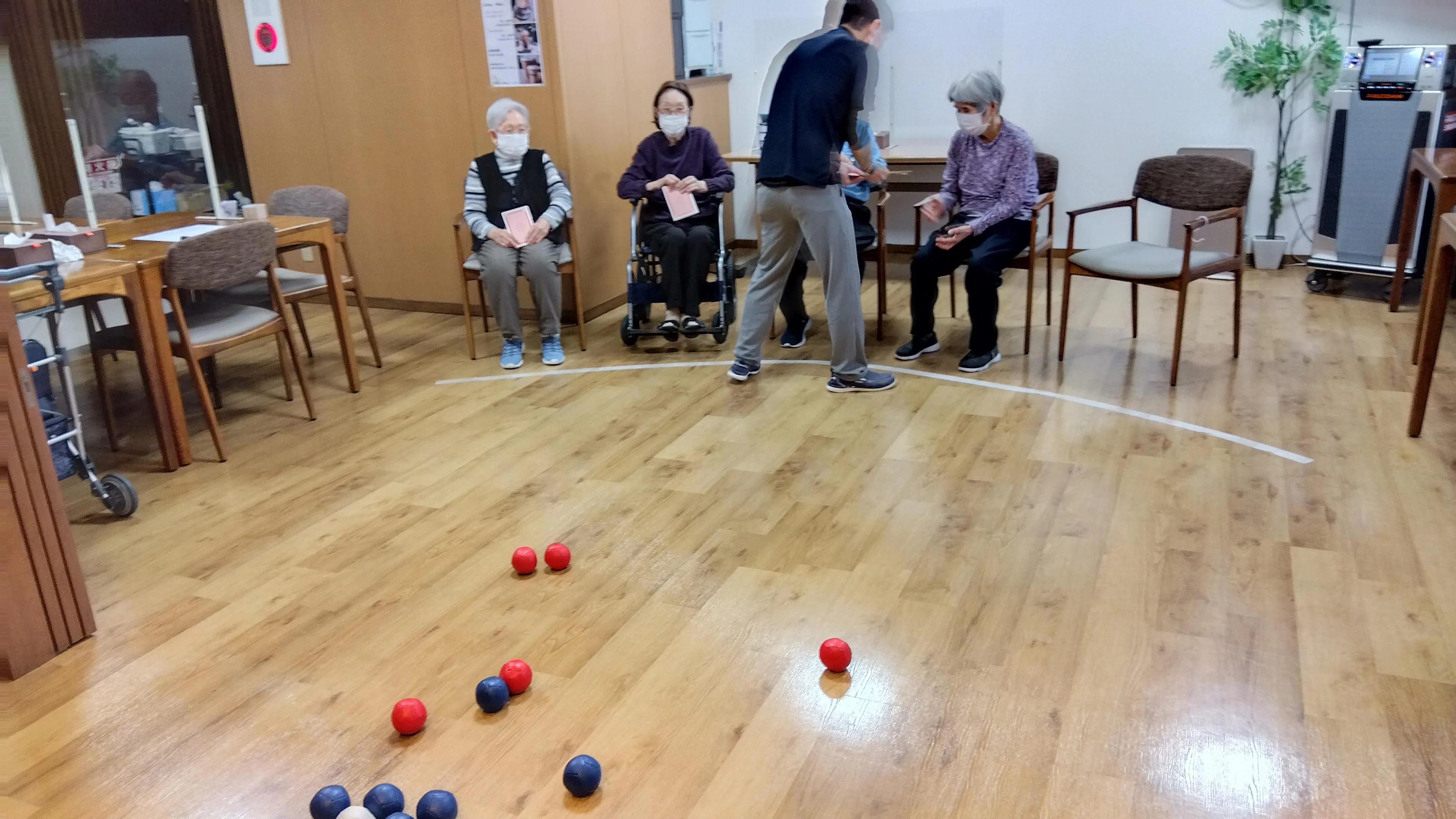 10月24日、サービス付き高齢者向け住宅にて、脳トレの時間に「ボッチャ」を行いました!