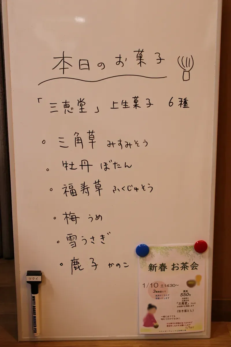 この日は、あたたかいお茶と和菓子を楽しみながら、ゆったりとした時間を過ごしました。