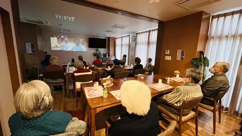 2月14日、サ高住の食堂が“ちいさな映画館”に変身しました。