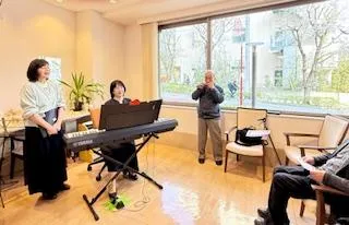 今回は、お客様のハーモニカ演奏も加えてのジョイントコンサート。窓辺の桜も揺れて、ハミングしてるようでした。