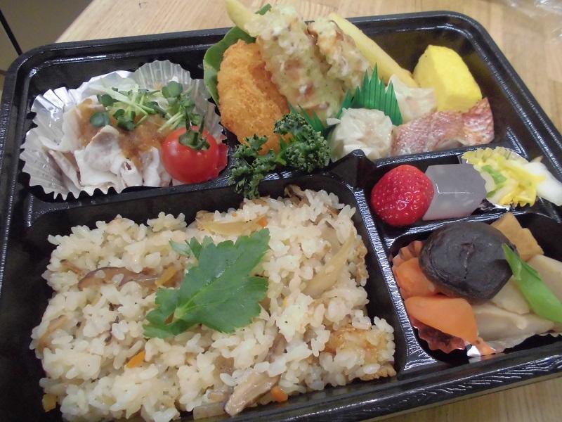 お客様にどちらかのご飯を選んでいただき、おかずはおまかせでお弁当をご提供。