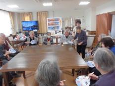 小さなうちわを使って一生懸命に球を打ち返したり空振りしたり・・笑いと笑顔が止まらない楽しい1時間でした。