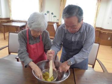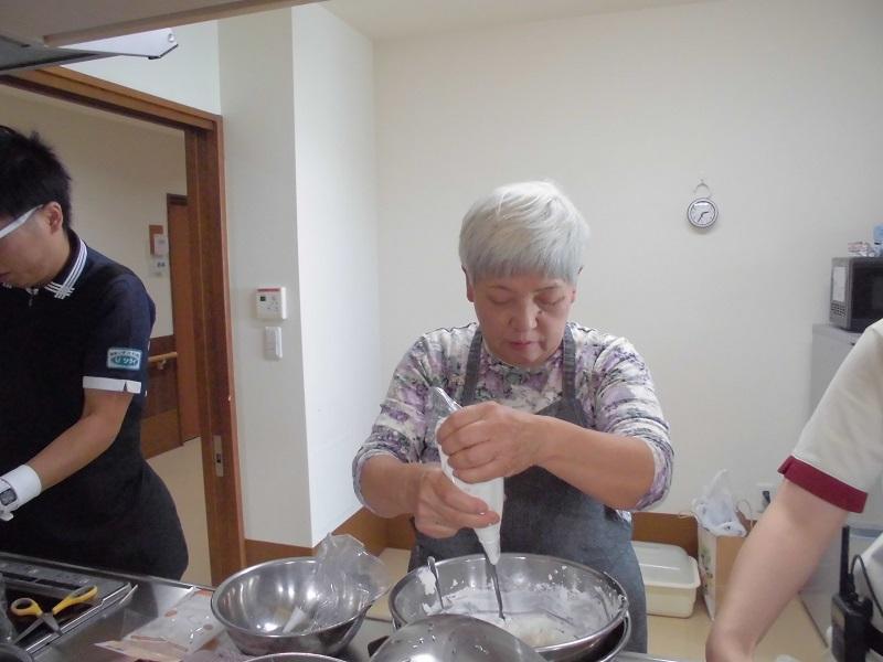 「久しぶりに料理したいわ」というお客様からのご要望で、お菓子作りを行いました。