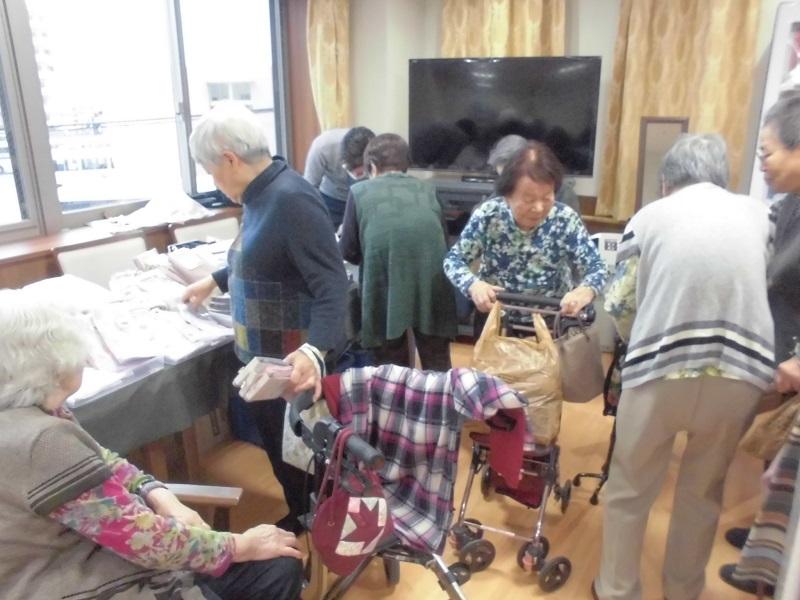 買い物が終わると廊下のベンチに座り、「あなたは何買ったの?」と買ったものを見せ合う方々も・・。