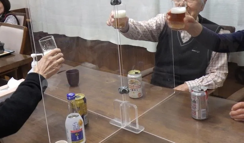 「昨日で自分も90歳になったのでそれも祝いだ」と、お酒持参で乾杯している方々もおり、ほろ酔いになって話しに花が咲いていました。
