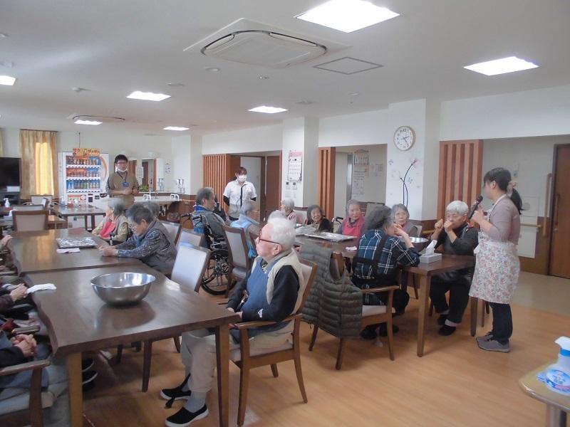 「夕飯が待っているから食べすぎないでくださいね~」と職員の声を聞いているのか聞いていないのか・・皆さん笑顔で2個はペロッと食べていました。