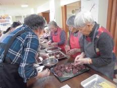 大きさを決めて作り始まったはずが、いつの間にか自分の好きな大きさになっていってしまい・・でも、料理が得意なご婦人方々が「手直しするからこっちへちょうだい」とチームワークの取れているお客様達です!!