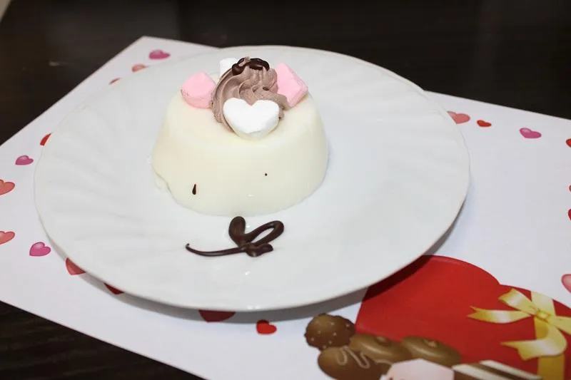 2月14日はバレンタイン!サ高住のお客様も通われているデイサービスの本日のおやつは、バレンタイン仕様のパンナコッタ。ピンクと白のハートがのった可愛いおやつです。Happy Valentine‘s Day!!