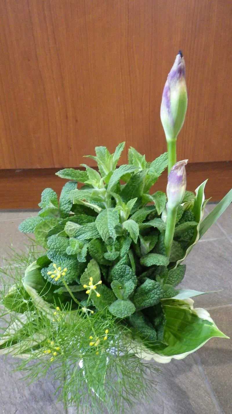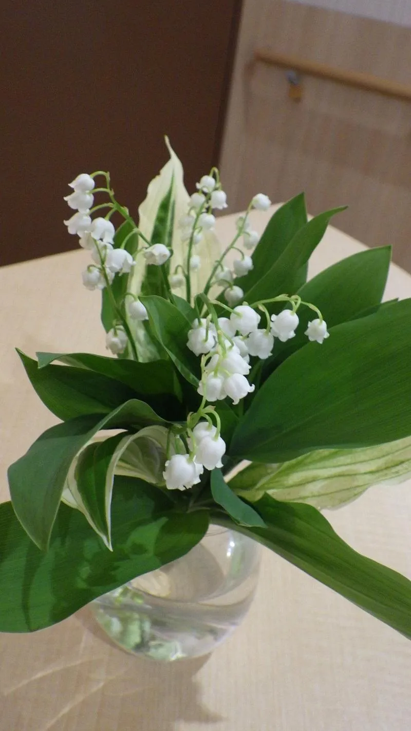 入居中のお客様のご家族から「家で咲いているお花でブーケを作ったので、よかったら飾って」と、爽やかなミント&ディルのブーケと可愛いスズランのブーケをいただきました。