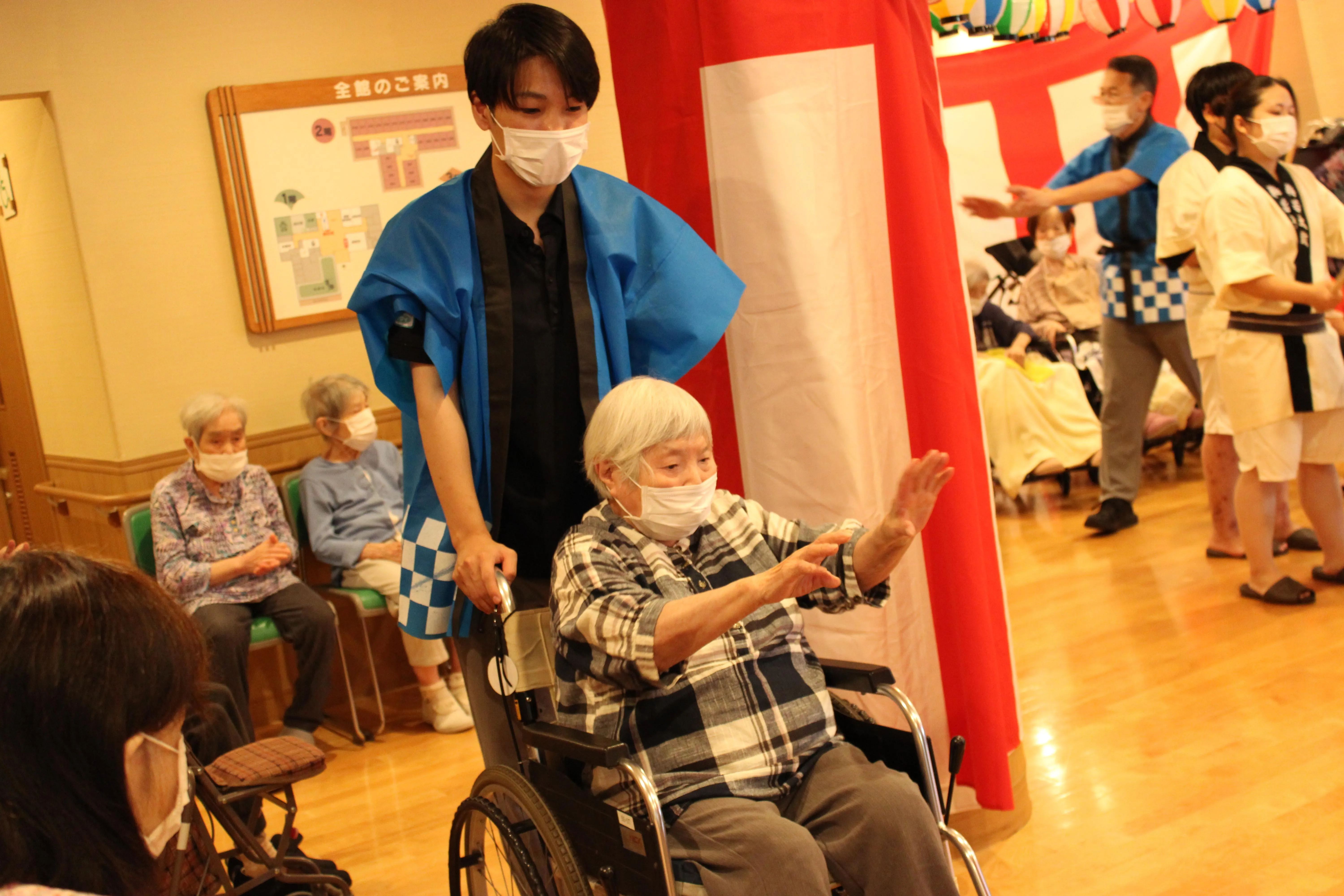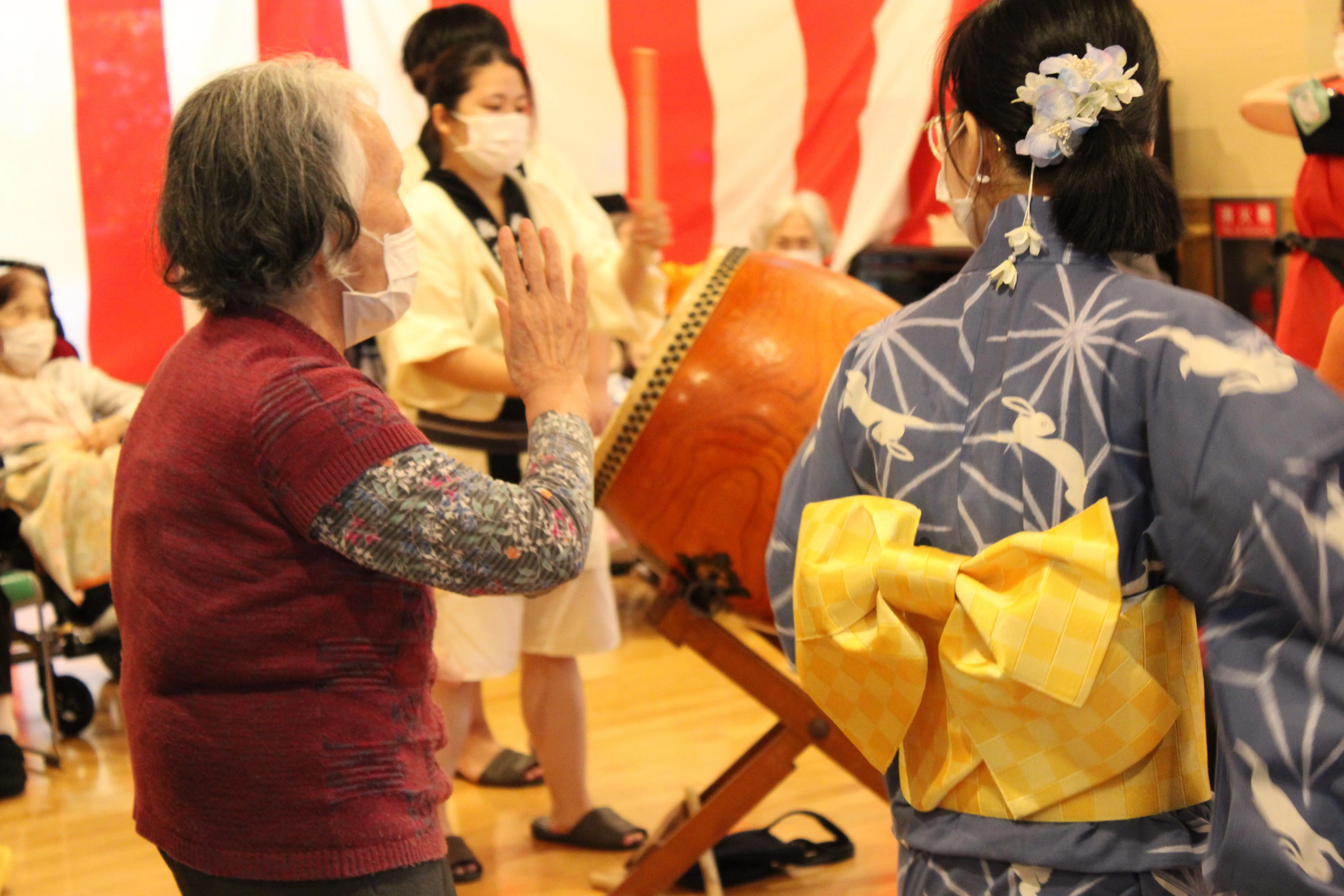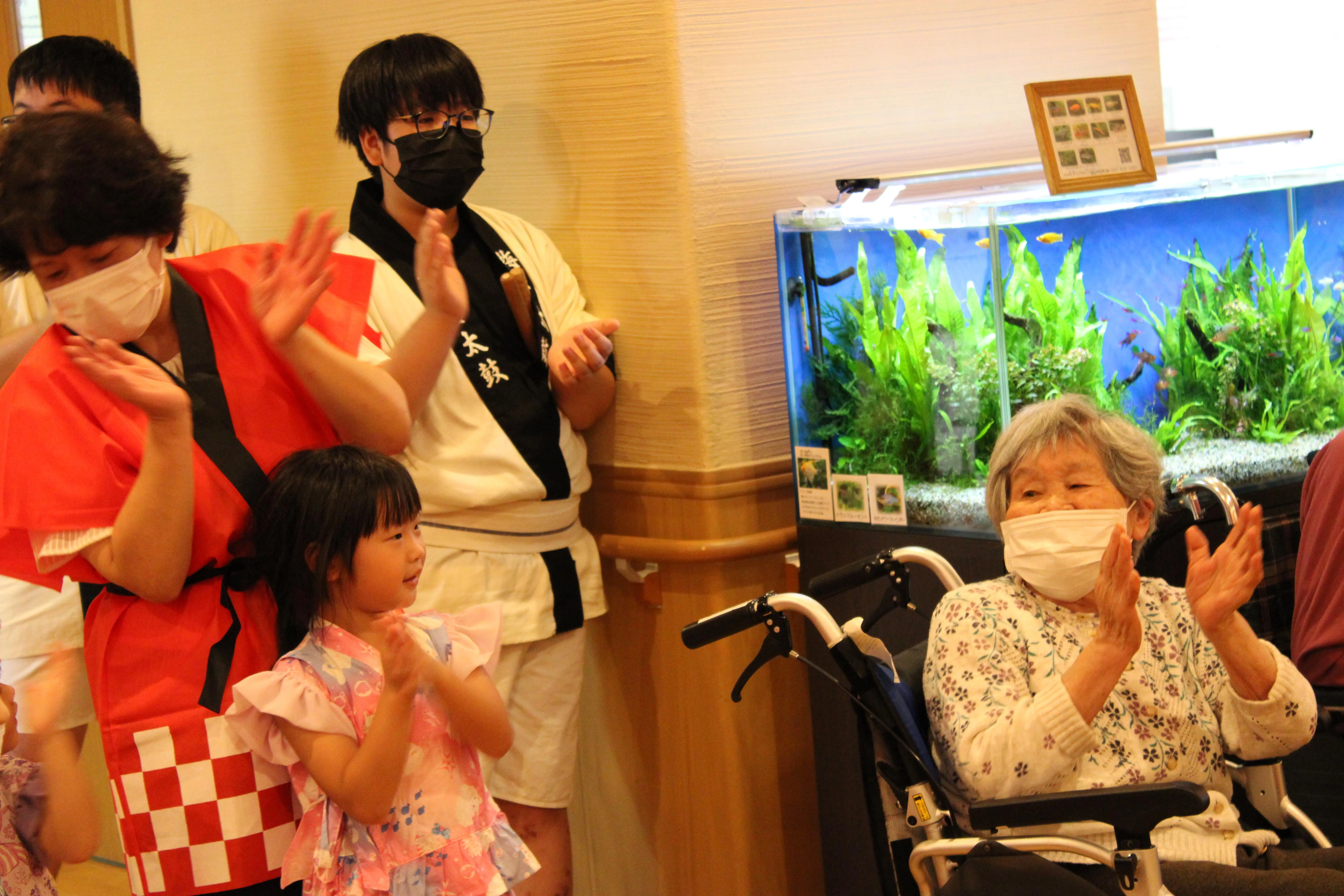 夏のイベントということで、「梅若太鼓」の皆様にきていただき、太鼓演奏会と盆踊りを開催しました。