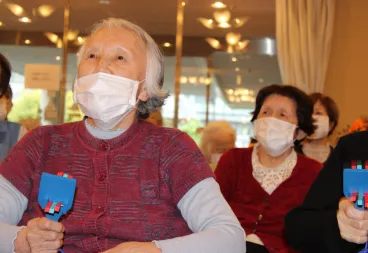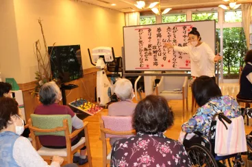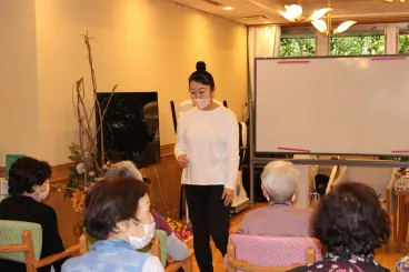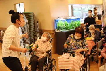 ツクイ・サンシャイン足立には月に1回、国立音楽院から若返りリトミックの講師が来てくれています。