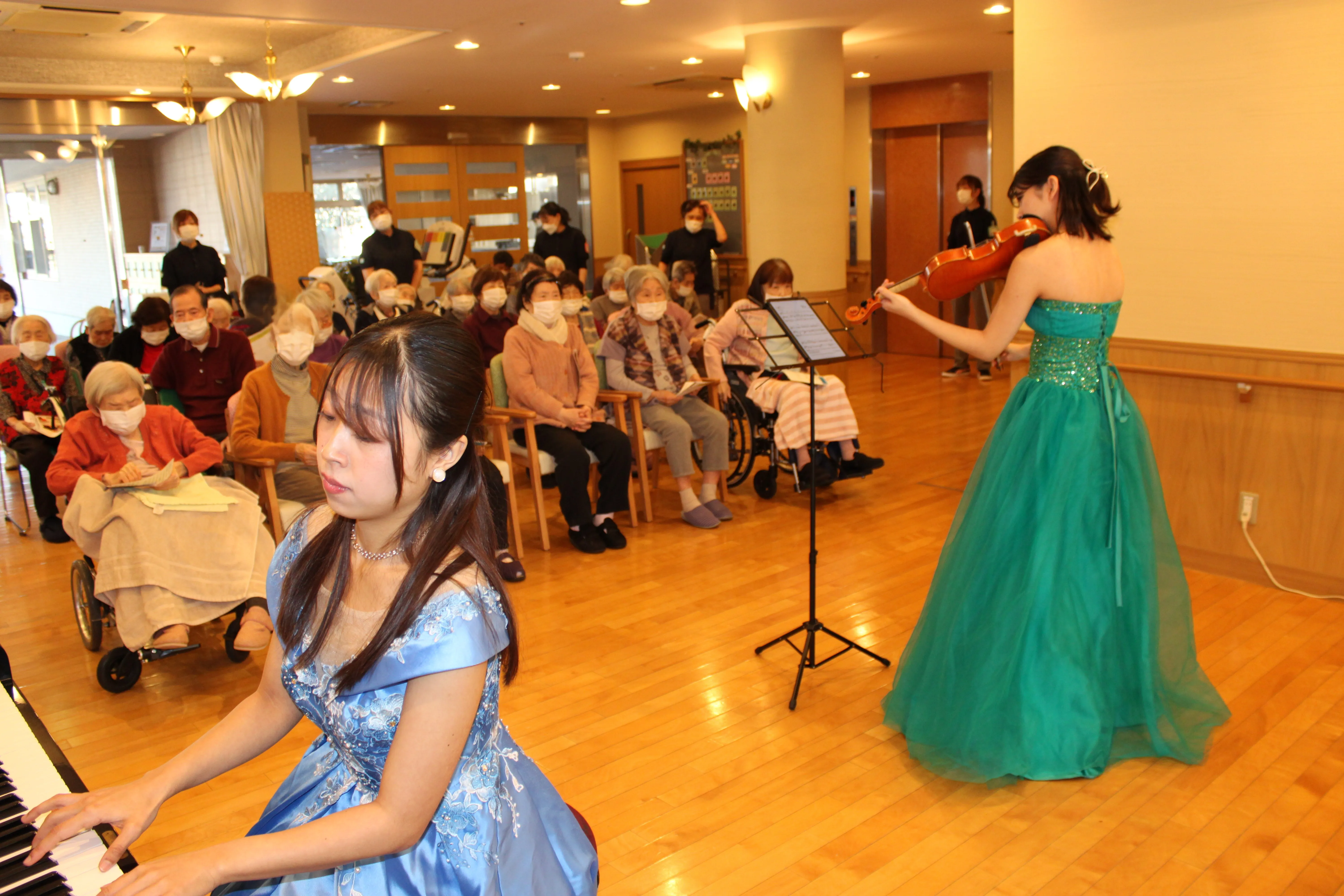 ツクイ・サンシャイン足立開設20周年をお祝いして、午後にはヴァイオリニストの安田様とピアニストの北様による、CLASSICAL CONCERTを開催しました。