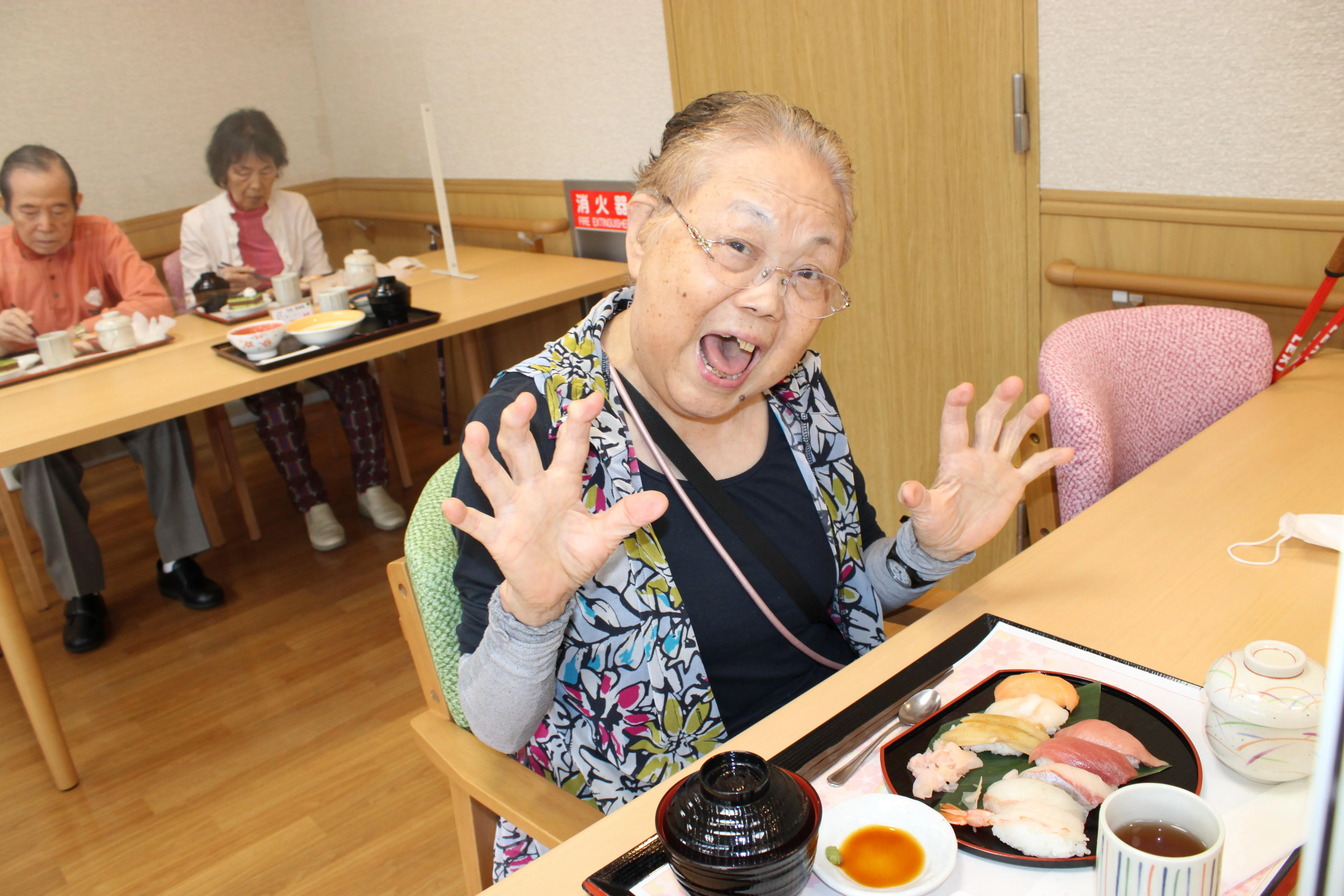 お寿司はお好きな方が多いメニューなので、皆様大変喜ばれていました。