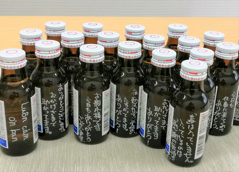 日頃の感謝の気持ちを込めて、栄養ドリンクを従業員に配布しております。 1本ずつ、感謝の気持ちを書きました。5月末までに就業を開始する方にもお渡しいたします。この機会に一緒に働いてみませんか?施設長より